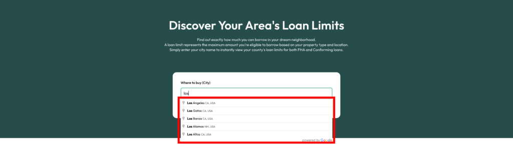Now, the next step is to check whether the home you’re considering is actually possible within your area’s loan limits.