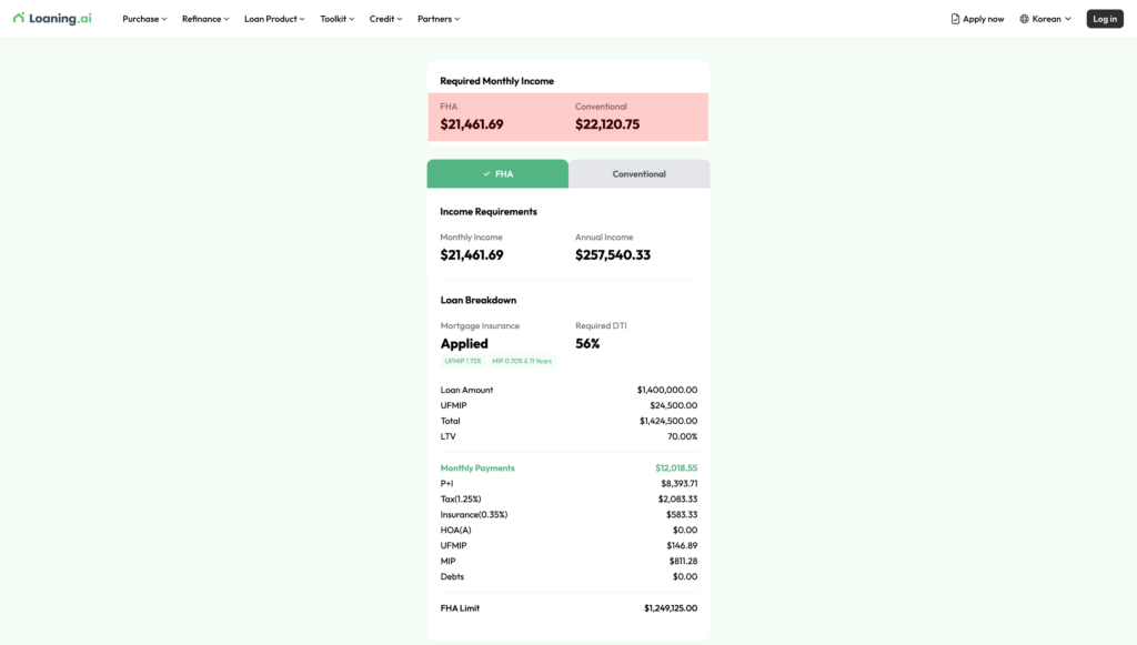 With Loaning.ai’s Income Calculator, you can quickly estimate the income required based on your target home price.