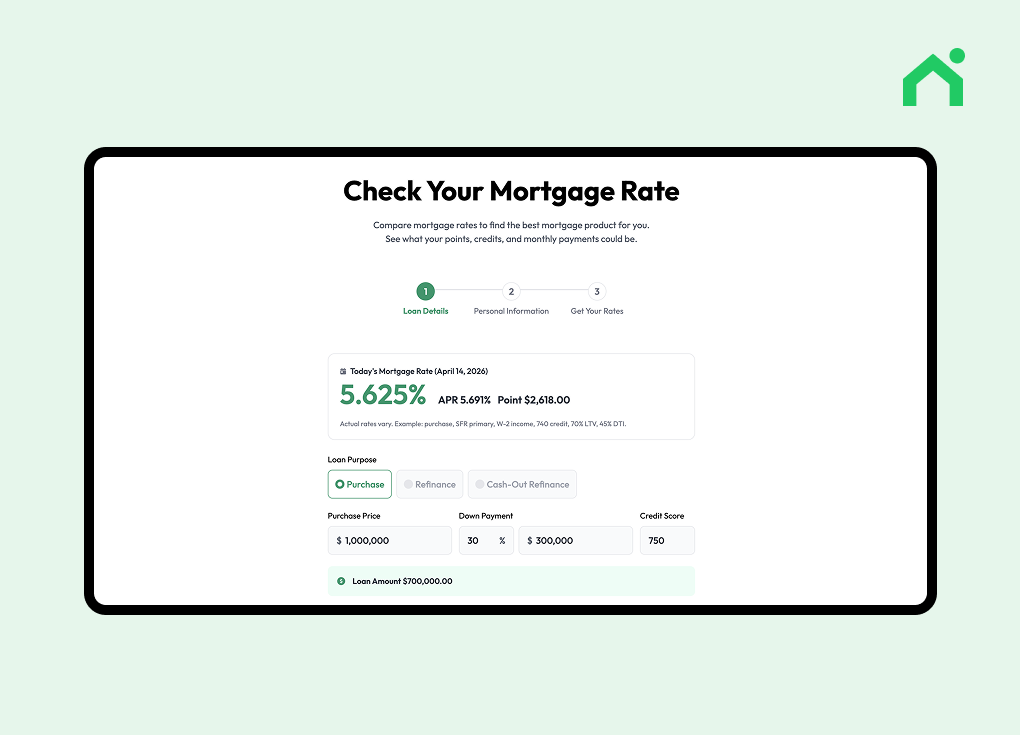 That’s why before seriously house hunting, it’s important to use a mortgage rate calculator to understand your potential rate and monthly payment based on your personal profile.
